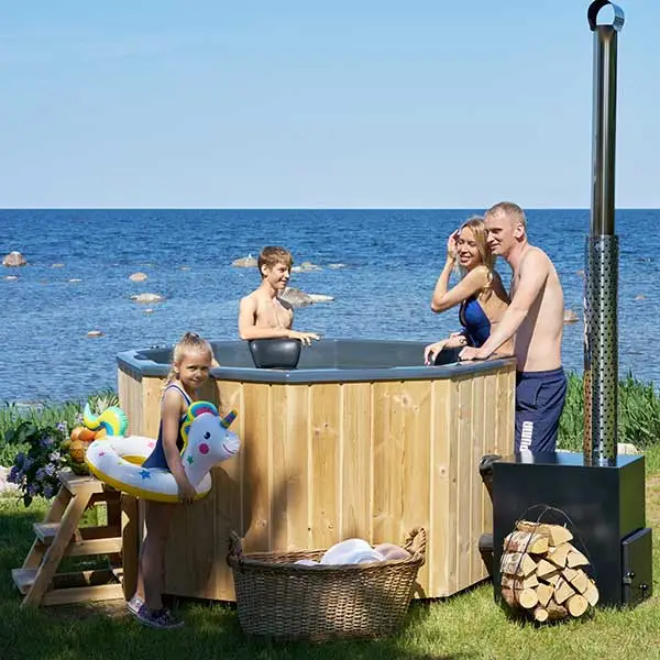 Momente der Ruhe und Erholung sind selten geworden. Ganz besonders in der kalten Jahreszeit ist kaum etwas Entspannenderes vorstellbar als ein Bad im heißen Wasser in der freien Natur. Die achteckige Badetonne ist eine stilvolle, versiegelte Konstruktion aus Thermoholz und GFK-Einsatz, die in 5 Farben erhältlich ist, einschließlich Perlmutt. Die Badetonne verfügt über bequeme Bänke rundherum, die mit 4 weichen Kopfstützen für Ihren Komfort ausgestattet sind. Die Badetonne wird montiert und gebrauchsfertig geliefert. Eine hervorragende Kombination aus moderner Technologie, hoher Qualität und erschwinglichem Preis. Diese Badetonne aus GFK eignet sich sowohl für eine große Familie als auch für den Badespaß mit Freunden.