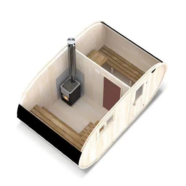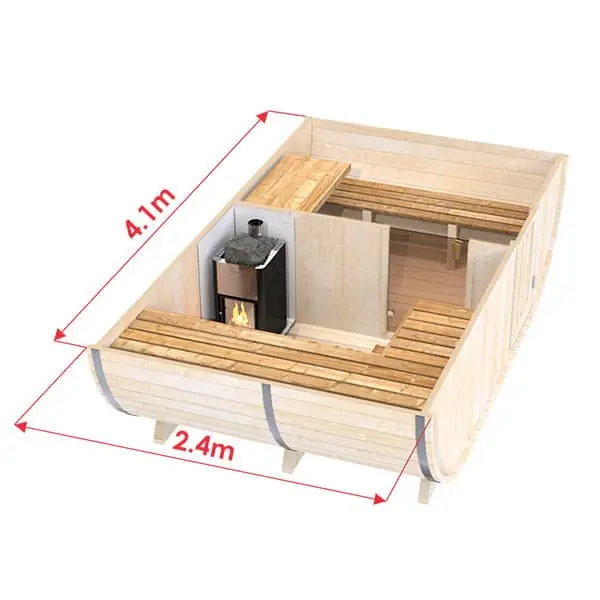 - Höhe: 1,8 m für Sauna mit Elektroofen; 2 m für Sauna mit Holzofen