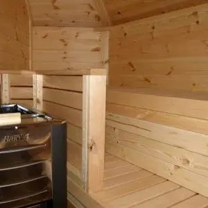 • 2 Räume: Sauna Innenraum & Umkleideraum